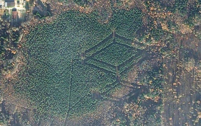 Както обаче се оказа, в горите на Смоленска област това не е така единственият тайнствен знак, неизвестен от кого и за кого направен. Скоро откриха изследователи на Google Earth изображения край село Хохлово още по-загадъчен символ (виж снимката по-долу) – под формата на “хвърчило”. Координатите му са ширина: 54 ° 41’18.83 “C, дължина: 31 ° 51’1.93” V. И отново: самите селски жителите не знаят, не знаят какво е наблизо случват се такива чудеса …