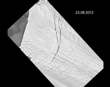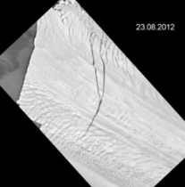 снимка от открити източници На ледения шелф на острова Пайн до един още един е добавен към пукнатината. Огромен айсберг е готов да се откъсне Антарктида. Крек, който се е образувал на ледения шелф Островът на бор се развива бързо. Сега дължината му е около 30 км, ширина достига 243 м, а дълбочината на места – 55 метра. ФОТО: НАСА наскоро използва немски сателит TerraSAR-X на повърхността на остров Пайн откри нова повреда. Експерти от НАСА, които внимателно наблюдават поведението на ледника, твърдят, че това е нормален процес, но е необходим за контрол. Според ABCNews, когато ледът се счупи, полученият айсберг ще бъде с размерите на нюйоркски град. снимки, направен от изследователския самолет на НАСА през ноември 2011 г. и публикувани през февруари тази година показват колко бързо расте пляскане. Тогава дължината му беше 28 километра. Остров Пайн е огромен ледник, с обща дължина около 50 км, простиращ се от подножието на планините Хъдсън до Амундсенско море, припомня „Дейли мейл“. Той е е част от ледената покривка на Западна Антарктида, от която През 2001 г. доста голям айсберг вече се е отцепил. Преди падането миналата година самолет на НАСА прелетя над ледения шелф, никой имаше доказателства, че започва да се разпада. Остров бор привлича учените с нестабилност колкото стойност. Нарича се най-големият източник на несигурност в прогнозирайки покачване на морското равнище.
