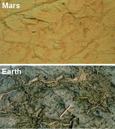 Структурата на гънките в района на скалната повърхност на Марс модерна микробактериална постелка в Тунис. Вижте: Astrobio.net