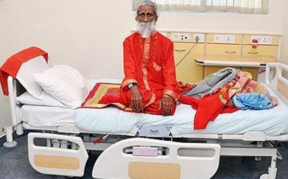 снимка индийски жител с отворен код на име Прахлад Джани казва, че не е приемал храна и вода повече от 65 години, но лекарите не могат да проверят твърдението му. „Не проверяваме неговите твърдения. Интересуваме се от способностите на човешкото тяло да издържат на екстремни условия “, каза източникът. Според него старецът е настанен в частна болница в града Ахмедабад е 22 април и оттогава е денонощен надзор над служители на Института по физиология на отбраната и свързаните с тях Науките. Лекарите потвърждават, че през последните осем дни той не е нищо Не ядох, не пих и не изпълних други естествени нужди. „Най-много удивително е, че бъбреците му отделят урина в малки количества, но той не се справя с нуждата, тя просто се разтваря някъде. обикновен човек в такива условия ще умре от опиянение при няколко дни “, каза Гупта.