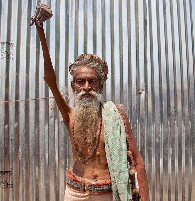 Индийски садху (свят аскетик) Амар Бхарати в продължение на 44 години държи дясната си ръка вдигната – в името на мира на земята. За почти половин век ръката му напълно атрофира, завъртя се почти до костта, покрита с кожа. И пръстите увенчават спиралите усукани нокти, които никой не е режел за това от дълго време.