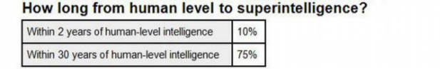 10% от учените смятат, че суперинтелигентността ще се появи след няколко години; 75% от анкетираните смятат, че това ще се случи след 30 години.