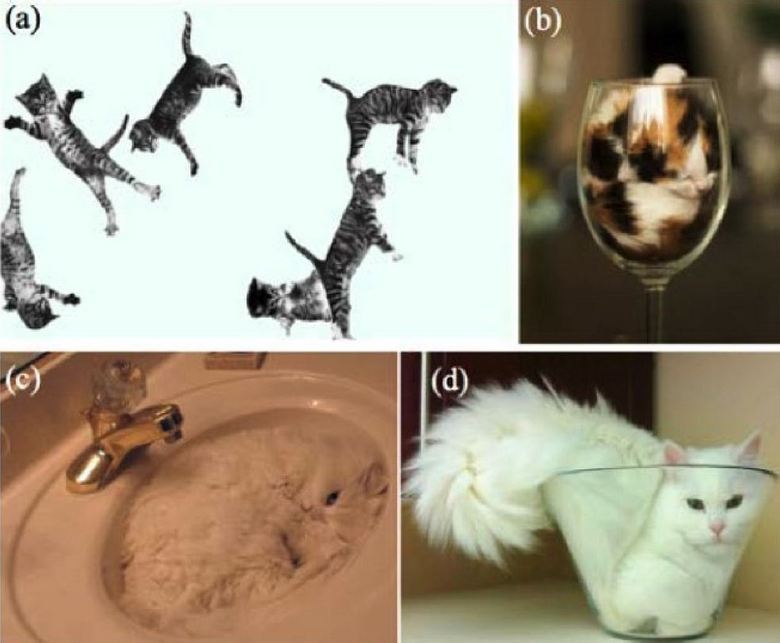 Друг екип от учени от САЩ, Сингапур и Франция под ръководството на Марк-Антоан Фардин (Marc-Antoine Fardin) доказа това котките са течни. Защото те също лесно поемат обем всеки съд (подходящ размер). Това се доказва от множество примери и снимки на любимите на тези хора и сега публикува и научна работа, озаглавена „За реологията на тюлените“.