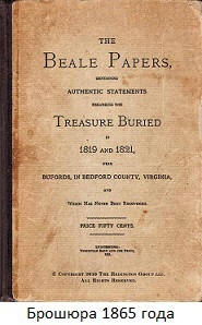 Вдъхновен от късмета след пет минути, милионерът изостави всичките си дела и се фокусира върху дешифрирането на криптограма №1. Но второ съдбата не му даде подарък. След 3 години фалира и вече един отчаян търсач на съкровище реши да сложи край на търсенето си. Той се срещна с издателя Джеймс Уорд и предложи това издайте брошура, в която изложи цялата история и текстове на всички 3 криптограми, надявайки се по този начин да спечелите поне малко съкровища не са намерени Търсачът на съкровища пожела името си пазете в тайна. През 1865 г. е издадена и кодирана брошура. Листовете на Томас Бейл станаха публични.