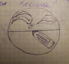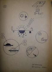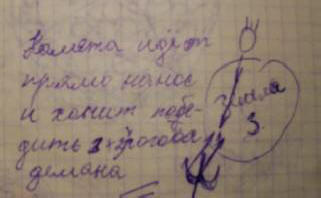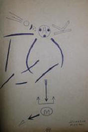 снимка от открити източници И това е рисунка, направена също от П. Максютенко в момента на контакт, но не е включен в статията. Демон с три рога, от очевидно означава триизмерност, триизмерност на човека съзнание на земята.