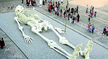 Снимки от открити източници 28-метров скелет, изложени в Националната галерия за модерно изкуство в Рим, създаден от художника Джино Де Доминиси