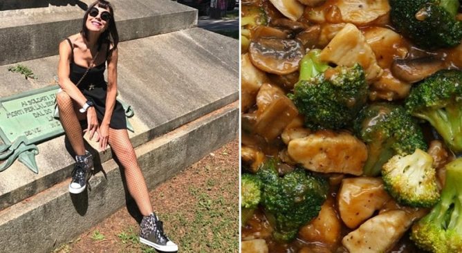 Сутрин, докато тренировката премине, жената не закусва, но след клас тя използва различни сладкиши с чаша капучино. Вна обяд като закуска италианецът яде портокали, банани и други плодове. За обяд тя има богати на протеини храни, които включва боб, моркови, броколи или гъби в соев сос. Навечеря за жена с пилешки гърди с боб и моркови. В диетата си може да включва и салати от пресни зеленчуци, паста със зеленчуци и зехтин. И за готвене една жена използва само зехтин.