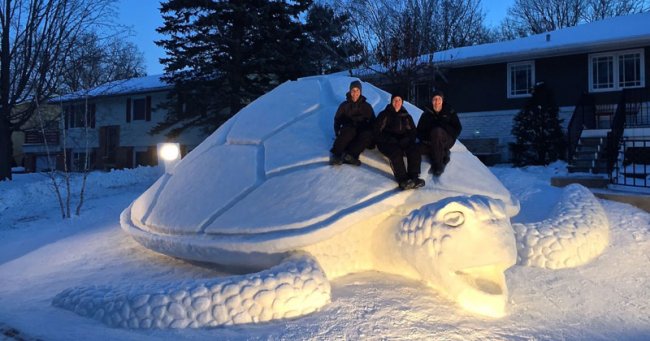 Всичко това иска да се каже за братята от Ню Брайтън – Остин, Конър и Трео Бартс, които създават близо до дома си истински произведения на изкуството от обикновен сняг. И всички те снежните скулптури не са по-лоши, а понякога дори превъзхождат съвършенство на изпълнението и уникалност на такива произведения световни майстори на това направление в изкуството, майстори кой спечелете най-високите и престижни награди в снежно фестивали.
