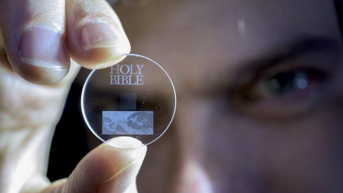 Служители на катедрата по изследване на оптоелектрониката Университетът в Саутхемптън успя да разработи иновативен метод съхранение на цифрови данни, което позволява на теория да съхранява гигантски обеми информация за безкрайно дълго време. Като a тънък диск, изработен от прозрачен материал, ще стърчи размерът на монета от пет рубли.