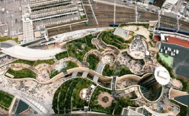 Снимка от отворени източници Един убедителен пример това – мултифункционалният комплекс “Кулата на паркове”, в допълнение към 30-етажен търговски център, включително отворен обществени терасовидни градини “Намба паркове”. Отидете да пазарувате Вече можете да вечеряте и да се присъедините към модерното изкуство. в средата на джунглата в сърцето на пристанищния град Осака, който е все още наречена “японска Венеция”.