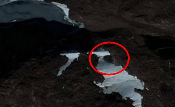 Друга интересна аномалия, открита на южния континент благодарение на топенето на лед и, разбира се, прекрасна програма Google Earth. Този път намери екип ловци на НЛО необичайна структура, която наднича от размразяваща се пещера Антарктида. Това откритие направи уфологът Тайлър Глокнер.