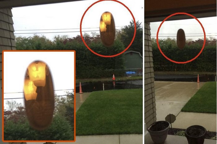 Необичайно НЛО със светещ вътре в малките му мъже гледаха жител на Нортфийлд (САЩ, Ню Джърси). Излиза една сутрин в двора и реши да наеме огромна локва по пътя, образуван след снощи дъжд, американецът случайно направи снимки и заобикалящата действителност. Както се оказа, в обектива му мобилен телефон удари дори небето.