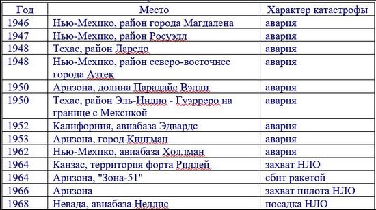 Факт е, че американските военни периодично разсекретяват НЛО и извънземни данни. Например днес безплатни източници е известно, че в допълнение към известния „Розуел инцидент, имаше и други извънземни катастрофи превозни средства. И в много случаи телата на мъртвите, или извънземни, или дали биороботите са паднали на американските тайни бази, например, само на един Райт Патерсън притежава тридесет замразени пилота на НЛО. Но като цяло има много повече от тях (вижте най-кратко разсекретен списък на сривовете на НЛО, в които почти винаги извънземните паднаха върху ръцете на военните).