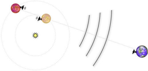 Честотният обхват, в който работят „ловци на извънземни умът “, включва така наречената” водна дупка “с честоти, характерно за излъчване на водородна и хидроксилна група (илюстрация Калифорнийския университет, Бъркли). Но все пак изследването не донесе желаните резултати и на извънземните не са се декларирали. Подробности ще бъдат публикувани в статията, приета за публикуване в Astrophysical Journal. Авторите обаче работата не се обезкуражава. Те ще прекарат скоро допълнително търсене на сигнал за отделни системи в даден момент когато техните планети ще се подредят по отношение на От земята. Това ще позволи да се открият сигнали, ако са между такива планети комуникацията продължава. На следващия етап от изследванията учените планират потърсете признаци на връзка между две екзопланети, когато те изравнете със земята (илюстрация) Калифорнийския университет, Бъркли). В следващата стъпка изследователите планират да търсят признаци за връзка между двете екзопланети, когато се редят във връзка с Земя (илюстрация Университета на Калифорния, Бъркли). „Можем просто приемете напреднали интелигентни цивилизации умишлено или неволно използвайте теснолентова връзка радио излъчване, се казва в проучването. – Значи ние търсейки само определени типове цивилизации, оценете общото броят на сортовете е твърде твърд. “Ключови надежди ловците на извънземно разузнаване са свързани с тежки задължения радио телескопи на бъдещето. Например телескопът Square Kilometer Масив, който ще бъде построен до 2019 г. в Австралия, Ню Зеландия и Южна Африка ще могат да приемат много по-слаби сигнали от всички съществуващи системи.