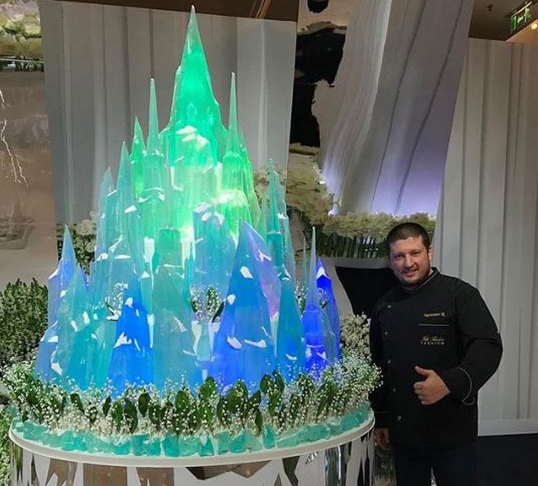Агзамов създава своите творения под формата на причудливи замъци и сложни фонтани, които изглеждат като в действителност течаща вода, приказни гигантски дракони и абсолютно вярващи заснежени планини. И всеки път е нещо ново изключителен, невероятен за въображението. Изглежда няма проблем в това не биха могли да се справят с този неумолим гений на кулинарното изкуство по безкрайния му път към върхови постижения.