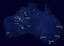 Вече писахме за райони, ярко осветени посред нощ в Централна Австралия, заснета по време на фотографията континент от спътника на НАСА. Наличието на светли петна от светлина („фантом“ градове “) през нощта в необитаеми територии на страната, притеснени мнозина. Тези светлинни петна в пустинните райони на страната изглеждат толкова огромен, че сиянието, което създават, е значително по-голямо от това, което най-големите градове в Австралия отбелязват на континента – Сидни, Мелбърн, Пърт.