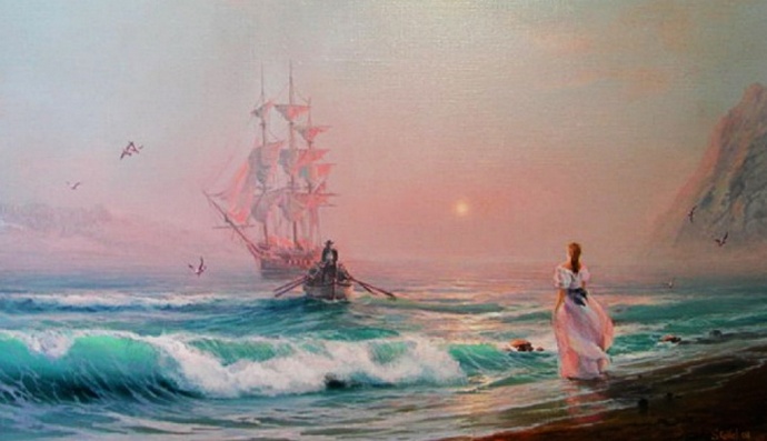 В разказа „Червено платно“ на Александър Грийн, колекционер на легенди казва на малкия Асол, че на кораб с червени платна за принцът ще дойде при нея. Отсега нататък момиче и после момиче започва да очаква това събитие. Веднъж в нейния град е капитан, който се влюбва в Асол. Като чу за прогнозата, той снабдява кораба си с алени платна и плава за любимата си, частично изпълнявайки пророчеството по този начин.
