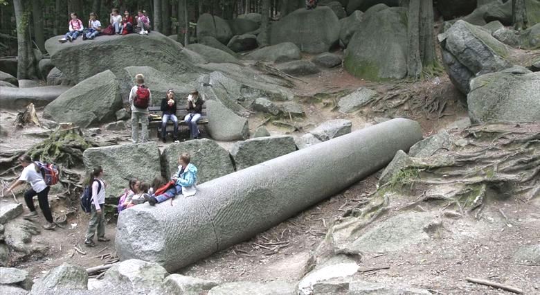Камъните на тази каменна река са интересни не само по цвят, но и по форма, някои от които са с изкуствен произход, защото имат следи от машинна обработка. Защо машинно помещение? Дело в че всички тези камъчета са диоритични, които могат да бъдат лекувани само диамант. Но кажете ми как древните хора биха могли да дадат правото те образуват тези фантастично твърди камъни без дори модерни технологии? Просто погледнете колоната, която е точно до този каменен поток в гората: кой го стопанисваше създадете?