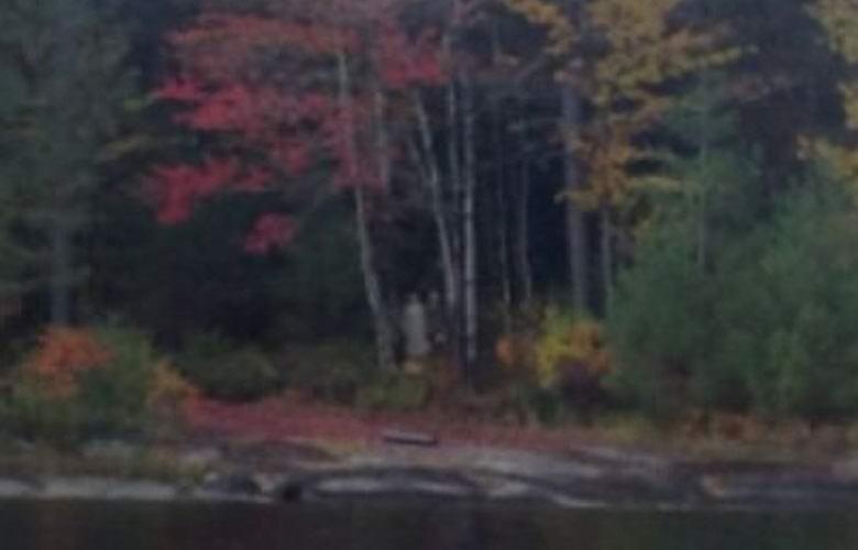 20-годишният племенник на моето гадже направи тази снимка, между другото, в края на миналата есен. Те напуснаха къщичката си в вода на моторна лодка и изстреля няколко изстрела от нея. Къщата се намира в частта на Онтарио, където някога на езеро беше спусната гора. Никой след това забеляза две мънички фигури, стоящи на брега на езерце. Те са заловен само с един изстрел. В дясната си част, под нисък червен клен, можете да видите няколко човека силуети. Лявата е като жена в дълга рокля, а дясната е като мъж в сако. Просто това едва ли може да бъде хора, тъй като вилата е на частна територия и никой от непознати никога не я посещават. И как биха могли тези цифри се появяват там почти моментално? На други снимки, направени с няколко секунди разлика, защото ги няма.