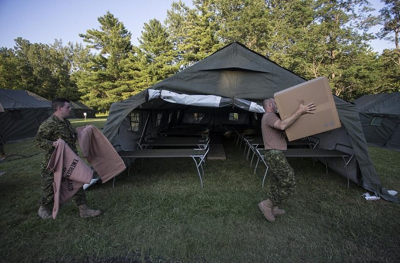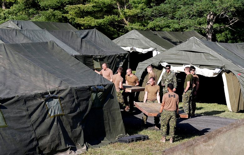 В момента е сглобен палатков лагер, който може да поеме хиляди хора и „странното строителство“ продължава, в него Участват стотици служители на канадската армия.