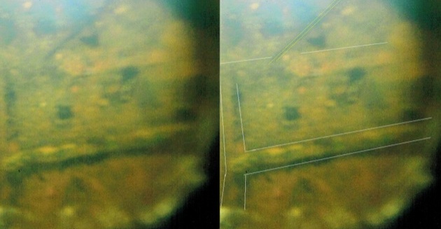 Усилията им бяха увенчани с успех – сондата показа наличието на вода големи запечатани кутии (виж снимката, на дясната снимка е направено линейно обозначаване на кутии от автора), в което, както съм сигурен Сергей Трофимов, и се съхранява известната Кехлибарена стая. му увереността е подкрепена от някои исторически изследвания и факти, за които той мълчи досега.