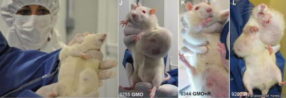 Двеста лабораторни плъхове бяха разделени в две групи. Нахранена една генетично модифицирана храна, втората – здравословна. Година по-късно, при плъхове, ядене на генетично модифицирана храна, открити са отклонения и тежка патология. Много жени развиха тумор на млечната жлеза жлези, в някои случаи достигащи 25% от телесното тегло на животното, в мъжете имат аномалии в черния дроб и бъбреците. Всичко това болестите са били 2-5 пъти по-чести, отколкото при животни, които хранеше здравословна диета.