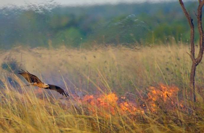 Основните палежи, според учения, са кафяви соколи и черни хвърчила, които пируват с горски пожари гущери, гризачи и змии, бягащи от бедствие.
