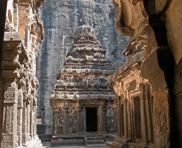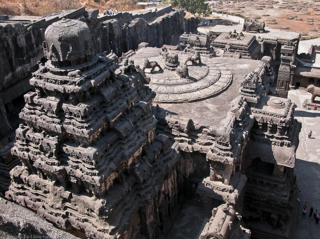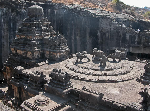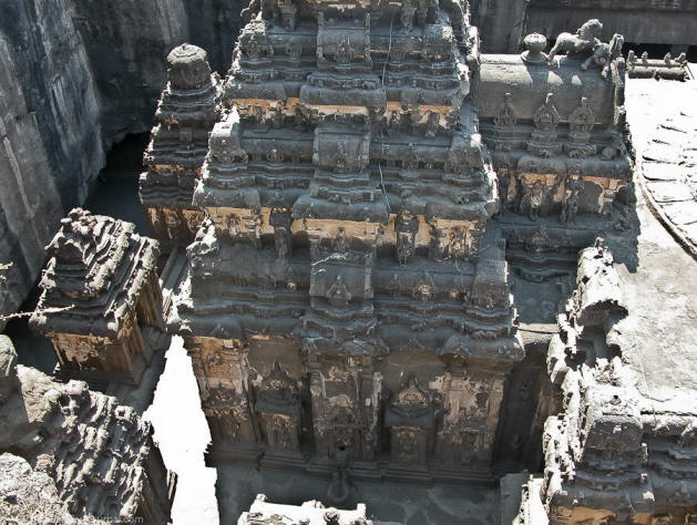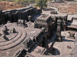 Дори изумителните пещерни храмове на Елора също не вървят какво сравнение с централната религиозна сграда на долината – Храм Кайласанат (или с други думи Кайлаш), издълбан монолитна, самотна скала.