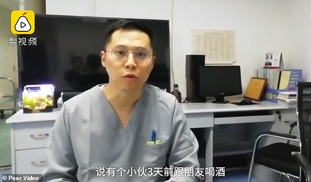 Два дни по-късно китайците отново пиха с приятели, но когато стигна до осмата бутилка бира, той повърна. Стомахът започна да боли и мъжът въпреки това реши да се обърне към лекарите. По време на инспекция в медицинско заведение, пациентът отвори уста и лекарят се почувства силен мирис на газ.