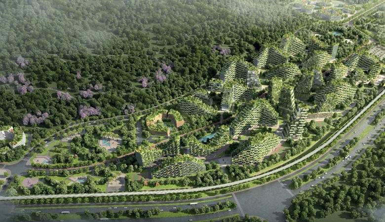 Изграждането на футуристичен зелен град е част от Правителствен план на КНР за борба с ужасяващото замърсяване средата, наблюдавана днес в страната. Ново населено точка и нейната инфраструктура, разработена от италиански специалисти дизайнерска компания “Стефано Боери Архитети”, която спечели слава за уникалните си екологични проекти.