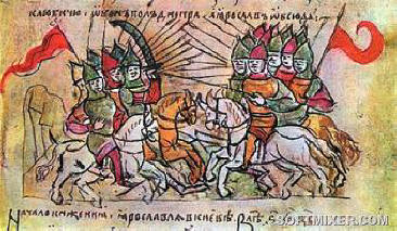 снимка от открити източници В периода на разпокъсаност руските княжества също продължи да се бори, известно е, че от 1054 до 1547г. руски князете участваха в 16 различни големи военни кампании, битки, отбранителни и настъпателни войни. Битка на реката Nemiga 1067 Битка при Стуня 1093. Cue топката на река Калка 1223 Битката при Нева 1240 г. Битката при ледовете 1242 г. Кампании в Бату Рус 1237-1257 години. Битка при река Ирпен 1321 Куликово битка 1380 Сриването на игото на Златната Орда 1439-1480 Гранична война 1487-1494 GG. Руско-шведска война от 1495-1497 г. Руско-ливоно-литовската война от 1500-1503 г. Руско-литовски война от 1507-1508г Руско-литовска война от 1512-1522г завоевание Централна Азия началото на XVI век.-1839 г. Стародубската война от 1534-1537г. В дните на руската централизирана държава между 1547 и преди образуването на Руската империя, до 1721 г., Русия участва в 6 големи войни, фигурата изглежда на пръв поглед малък, но това беше най-трудният период в историята съществуването на руската държава след монгола нашествия.