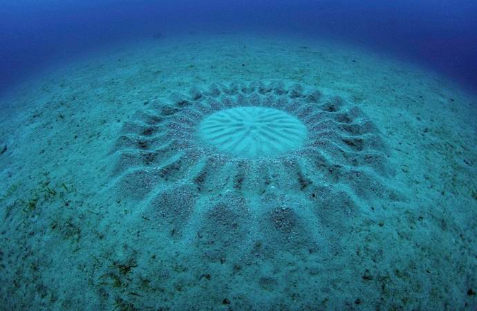 Yohji Ookata вече се гмурка и подводна фотография почти пет десетилетия, но подобна находка наистина поразява това. Гмуркане в близост до островите Ликай, за да направи снимки коралови градини, японците случайно се препънаха на дълбочина двадесет пет метра върху обемна рисунка с пясък. Той представляваше идеално плосък кръг с диаметър около седемдесет сантиметра с вълнообразни хребети, отклоняващи се от центъра.