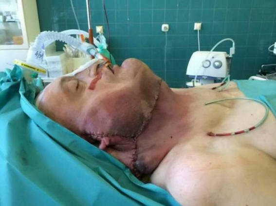 Словашки лекари от село Мартин свалиха 6 килограма подуване от лицето на местния водопроводчик Стефан Золейка. странен образованието започва да расте на брадичката му преди 20 години и оттогава след това постоянно се увеличаваше. Поради рядко заболяване, мъж дълги години не напусна дома.