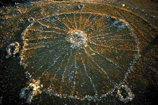 За мегалитни доказателства от миналото, като напр Британски Стоунхендж, Ливан Баалбек, Идоли на Великденския остров, да не говорим за египетските пирамиди, пише и пише различни Медиите. Освен това произходът и предназначението на тези паметници спорът за античността продължава и до днес. Въпреки това на нашата планета има много други, много по-малко известни, но не по-малко древни и мистериозни структури. Воланът на индианците Crow In Wyoming (САЩ), в подножието на Големия рог планина, на тревисто плато се намира огромен „волан – с диаметър около 25 метра. Поставен е от големи камъни и камъни с размери по-малък, в центъра е “главина” под формата на хълм с диаметър 3,5 метър, от който 28 спици се разминават към джантата и отвън кръгчетата са шест малки заоблени туберкули високи около 70 сантиметра. Индийците наричат тази сграда „магия колесом”, а также “исцеляющим” и “сохраняющим жизнь”.