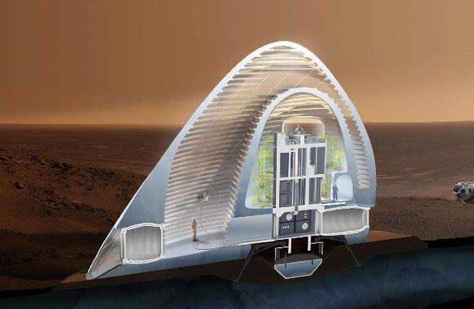 Експертите предлагат да се построят ледени къщи в циркумполяра ледни райони на Марс. Дизайнерите са сигурни, че стените, състоящ се от няколко слоя замразена марсианска вода, позволяват на земляните да се чувстват комфортно в тежки условия Марсианска атмосфера. Според намерението на разработчиците, благодаря многослойна черупка вътре в такъв високотехнологичен иглу ще бъде осигурени са необходимата температура и налягане. Лед на марс толкова много, че такива строителни материали няма да имат недостиг, дори ако земляните започнат да летят към далечна планета в милиони.