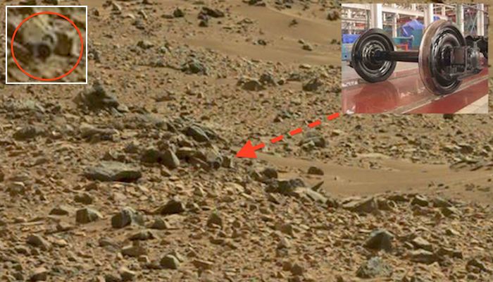 Уранолог Паранормален тигел в една от направените снимки Rover Curiosity, открит нито повече, нито по-малко – чифт колела, като тези, които имат, да речем, колички, използвани в мини или влакове.