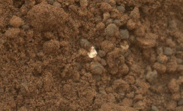 Докато анализаторът анализира, експертите от НАСА все още преглеждат една „хлебарка“, хваната в кадъра. Той е много мъничък – малко повече от милиметър. Но той се откроява от общия фон. измишльотина свети ярко като златен самород. Това е метал или минерал, не то е известно. Експертите не излагат хипотези. Само предполагам това “самородно” вероятно е местно. Поставете на малка дълбочина. Исе появи на повърхността, защото роботът го изкопа при загребване лъжичка за втори път.