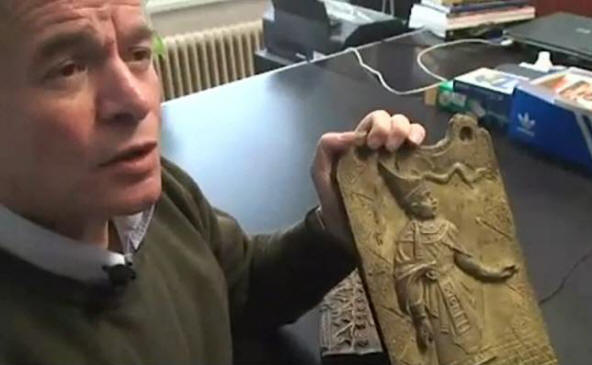 Металната плоча, за която се твърди, че е открита от Мориц в пещера