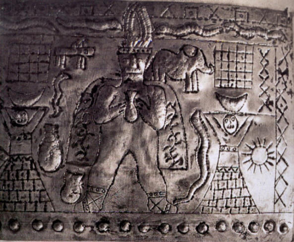 Оказва се, много преди сегашната ера на космонавтиката хората са знаели за това сферична форма на земята. Другата фигура на пода има правоъгълна форма тяло и кръгла глава. Това странно същество стои на земно кълбо. и държи в „ръцете“ на луната и слънцето. Намерих и фигура, която наречен „клоун“ или „пилот“. На главата му е каска с слушалки, ръкавици на ръцете. На костюма си, наподобяващ скафандър, пръстен и проводници, прикрепени.