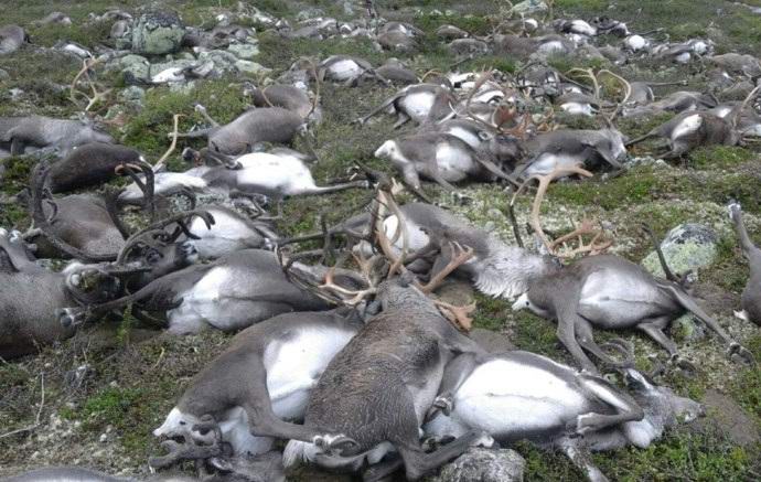 Национален парк Хардангервидда в Западна Норвегия много мистериозно събитие, което не може да бъде обяснено учени. Триста и осемнадесет елена бяха намерени мъртви радиус от петдесет метра. Оказаха се още пет артиодактила критично ранени, така че те трябваше да бъдат евтаназирани. Както се съобщава представители на парка, вината вероятно беше мощен разряд мълния, която падна право в голямо ято животни.