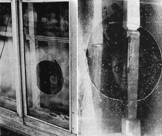 Самият прозорец, който се почука малко преди това, изведнъж като ще избухне. Майка мислеше, че са застреляни, и легна с дъщеря на пода. Други „изстрели“ обаче нямаше. Прозорецът, както се оказа, се блъсна много странно. По средата на открито стъкло образува кръгла дупка, нагоре и надолу от която потегли по гъста пукнатина.