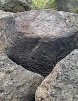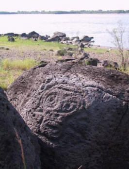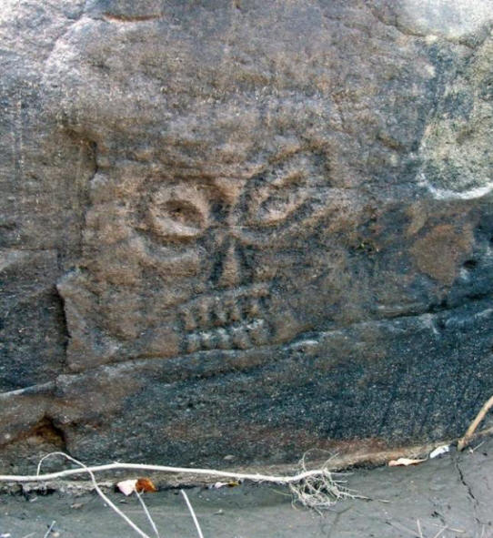 Снимка от отворени източници Отгоре формата на срутването беше много подобна на Православен кръст: една голяма права ивица и две по-малки – в диаметър. Такава картина трудно може да се нарече случайност. Фактът, че същото се случи на това място, бяха направени много предположения. себе си Министерството на извънредните ситуации не даде официални заключения. много експертите се страхуваха да кажат нещо. Версия за посещение на тях НЛО местата не са потвърдени, особено след като такива явления наблюдавани в съседни райони Вяземски. Особено оттогава сметища има и други функции, които в началото никой привлече вниманието: изглежда, че някой е намръщен мина през тези места. Открити са парчета трева, обърнати изправени земя, а самите дървета бяха овъглени, въпреки че огънят все още беше на тези места не мина. На тях енно тази подробност – изгорелите дървета е тази, която прави за свързване на сметища и странни пожари в Хабаровска територия заедно. Итези два явления са свързани заедно от едно същество, в съществуване в което местните жители са вярвали от векове. Става въпрос за … дракон … 75 километра от Хабаровск на брега на Амур Малкото нанайско село Сикачи-Алян се намира. Ето ги уникални древни камъни, които запазили странни рисунки Нанайски предци. На един от камъните е шаманска маска, като отправна точка към други петроглифи – древни изображения, издълбани в камък.