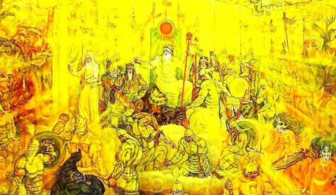 Когато стигна до седмото небе, той обяви своето човек Чингис Хаан, който отговаряше за човешките съдби. Извади книга, в която беше написан планът на смелия шаман, и започна да откъсва страниците оттам, хвърляйки ги в огъня. обаче съдбата на якутския магьосник се оказа “пълна”, а самият Чингис Хаан не го направи успя да го унищожи: изгорените страници неизменно се връщат към книга.