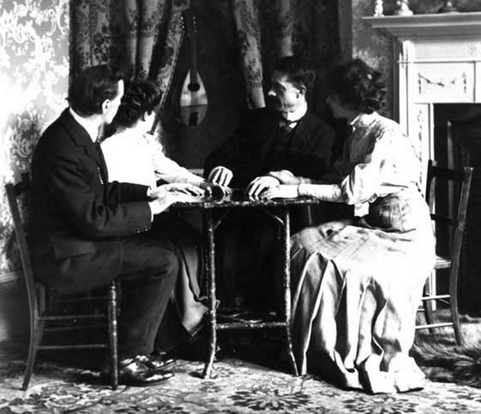 В стаята, почти празна, бяхме само трима – аз, собственикът и дама на медиума. Дамата седеше на няколко метра от масата, на която Помолиха ме да седна и да му сложа носна кърпа, така че единият й край висеше надолу. Заех се с друг. Скоро Усетих, че някой дърпа шал и все повече. Скоро едва успях да го държа с двете си ръце и шалчето Издърпах се, на път да се откъсна. В този случай жена и хазяинът седеше тихо на два метра от масата.