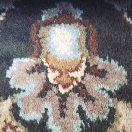 Фигурата наистина прилича на клоун с високо чело, червено коса и пищна яка. Производителите на килими вероятно са опитвали изобразяват определено цвете, но резултатът беше чудовище от сега известен ужас, който бе предопределен да бъде публикуван по-късно много десетилетия. Разбира се, говорим за паредоличен илюзии, когато мозъкът ни разпознава познати образи на случаен принцип предмети, за които постоянно свръхестествени любители предупреждавани от психолози.