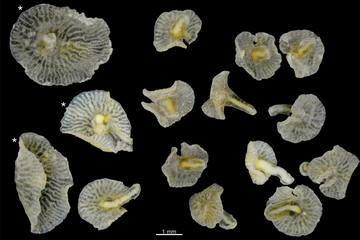 Мистериозни животни, открити на рафта на Австралия, отвън напомнете гъбите “лисички”. Океанските същества са толкова необичайни че за тяхната квалификация учените създадоха ново семейство животни на света. Също така все още не се знае нищо за начина им на живот, храна, както и движение. Два нови вида на тези мистериозни същества, официално наречени Dendrogramma открива и Dendrogramma Enigmatica. Ширината на техните плоски дисковидни тела е около 1 вижте Вътре дисковете са храносмилателни тръбички, които доставят хранителни вещества в цялото тяло, което наподобява дизайн на велосипедна гума с игли за плетене храносмилателни тръби. В центъра на диска е уста, която прилича на стъблото и, както изглежда, служи не само за ядене, но и за обезвреждане на отпадъци От двата нови вида един има повече късо стъбло и по-малък диск в сравнение с друг, обаче разликата е само няколко милиметра. В момента Има само 18 проби от дендрограма. Всички бяха хванати Експедиция от 1988 г., която се занимава с проучването на протока, разположен между Тасмания и Австралия. Странни организми са открити в смес от морска вода и дънни седименти, разположен на разстояние 1000 метра от повърхността на океана. за връщайки се на брега, учените са изучавали модели на морския живот, събрани по време на експедицията. Откривайки странни същества, изследователите решили, че са изправени пред нов вид медузи. При по-внимателна проверка обаче жилещите клетки (отличителни черта на истинска медуза) не бяха открити. Също на мънички телата на съществата не бяха открити и никаква друга характеристика знаци, чрез които те биха могли да бъдат причислени поне известна наука. Учените обаче вярват в това въпреки това древните роднини на неидентифицирани същества медузи и евентуално ктенофори. Тези странни нови видове живот същества имат поразителна прилика с някои вкаменелости най-ранните животни, чиято възраст е повече от 600 милиона. години. Вкаменелостите са идентични по форма с три лопатения диск крак и много подобна храносмилателна система. сходен вкаменелости са открити за първи път в Австралия, но са Dendrogramma техните живи потомци, иначе тези видове са просто нещо подобни, учените все още не могат да кажат със сигурност. В допълнение, значително усложнява търсенето на отговори е, че дълбоководни “гъби” дълго време бяха в химическа среда, която не унищожи само техните клетки, но и ДНК, което също е сериозно пречка за тяхното класифициране. Учените се надяват мънички желеподобни организми някога ще бъдат намерени дълбините на океана и съвременните генетични изследвания ще помогнат разкриват своя еволюционен клон.