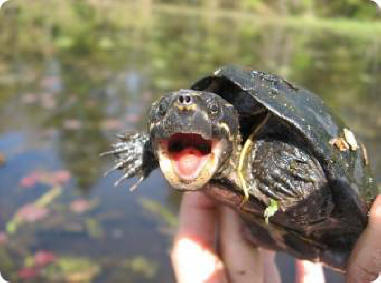 Снимка от отворени източници Учените са изследвали храненето на младия мускус костенурки, които от време на време в търсене на храна отиват на сушата. Те забелязали, че, намирайки храна, костенурките я влачат назад във водата и само там те се опитаха да преглътнат. Учените са открили причината такова необичайно поведение: слаб и малък мускусен език костенурките са покрити със специални папили, които тя използва, за да получите кислород директно от водата. Според авторите на статията, такъв дихателен орган би могъл да бъде получен от влечуги от далечните им предци.