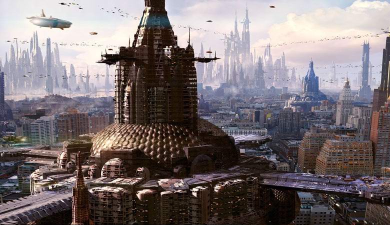 Ако погледнете отблизо, можете да видите на снимката фантастични сгради на фона на далечни хълмове и нещо подобно голяма “летяща чиния” във въздуха. Това наистина ли е снимка от бъдещето? Изглежда подозрително като нещо извън въображението. писател на научна фантастика от средата на миналия век, но кой знае: може би именно първите автори на научната фантастика са предвидили далечното бъдещето?