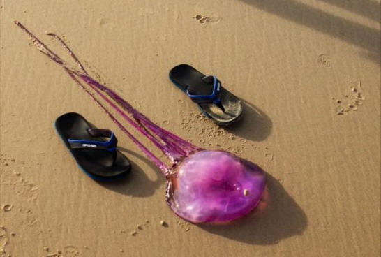 „Все още не успяхме да определим видовете на това животно, но, може би се отнася до мозаечна медуза, видяна в Австралийски води и още повече близо до югоизточния бряг Куинсланд е рядкост, тъй като те обитават главно в топлите тропически води. Ние вярваме в това лилавите медузи могат да отидат в Австралия с баласт танкерни води от Малайзия или Филипините – аргументира се тя.