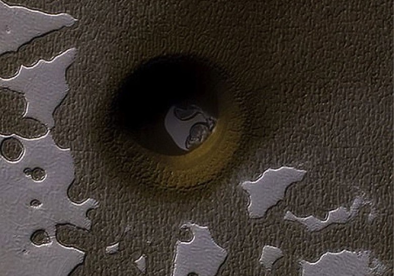 И сега тази кръгла вдлъбнатина с диаметър няколко километра образувано сред това „сирене“ на Южния полюс и то е направено просто филигран, който не прилича на кратер за удар, образува се при падане на метеорит. Струва си да се каже точно там около същата кръгла яма MRO, „намерена“ на Марс десет преди години, но сегашната не беше тук, трудно е да не го направим забележете …